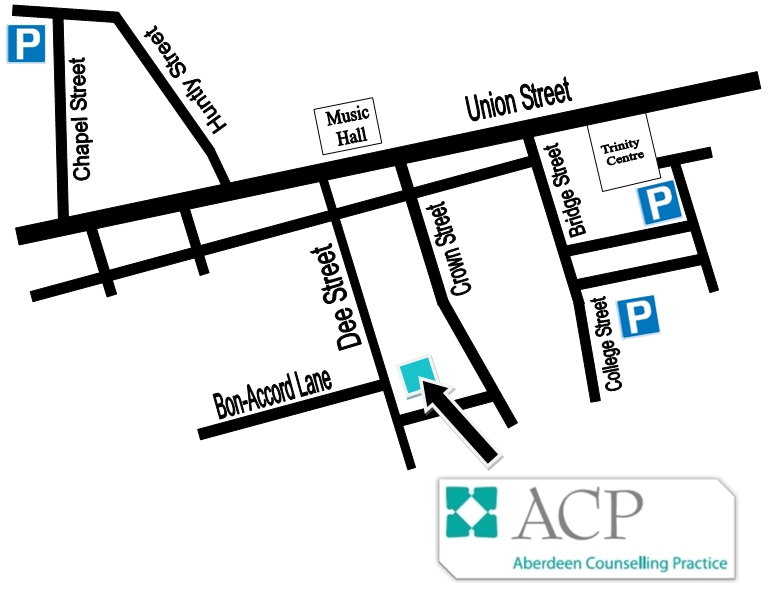 The best way to find us is to get on to Union Street. From the top end of Union Street, facing east down Union Street, take the third opening on the right hand side, Dee Street (there is a “Burger King” on the corner). Dee Street is a one-way street. We are located approximately half way down the street on the left hand side. We are located on the lower ground floor of number 39.